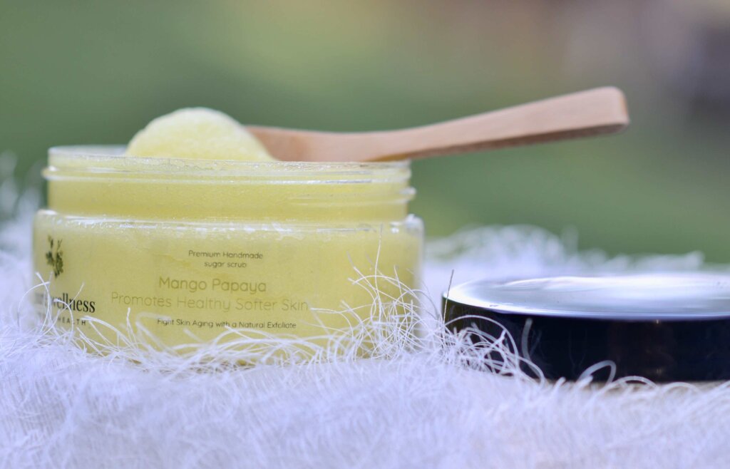 Skin exfoliants, body sugar & salt scrubs, body powder