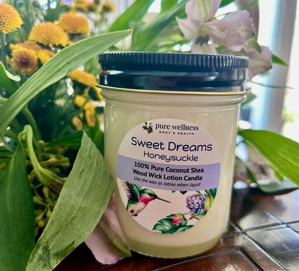 The sound of the soft wick burning, the earth-inspired essential oil aromas, and the candle wax’s ability to be used topically as a lotion contributed to positive sensory experiences for his emotional system.